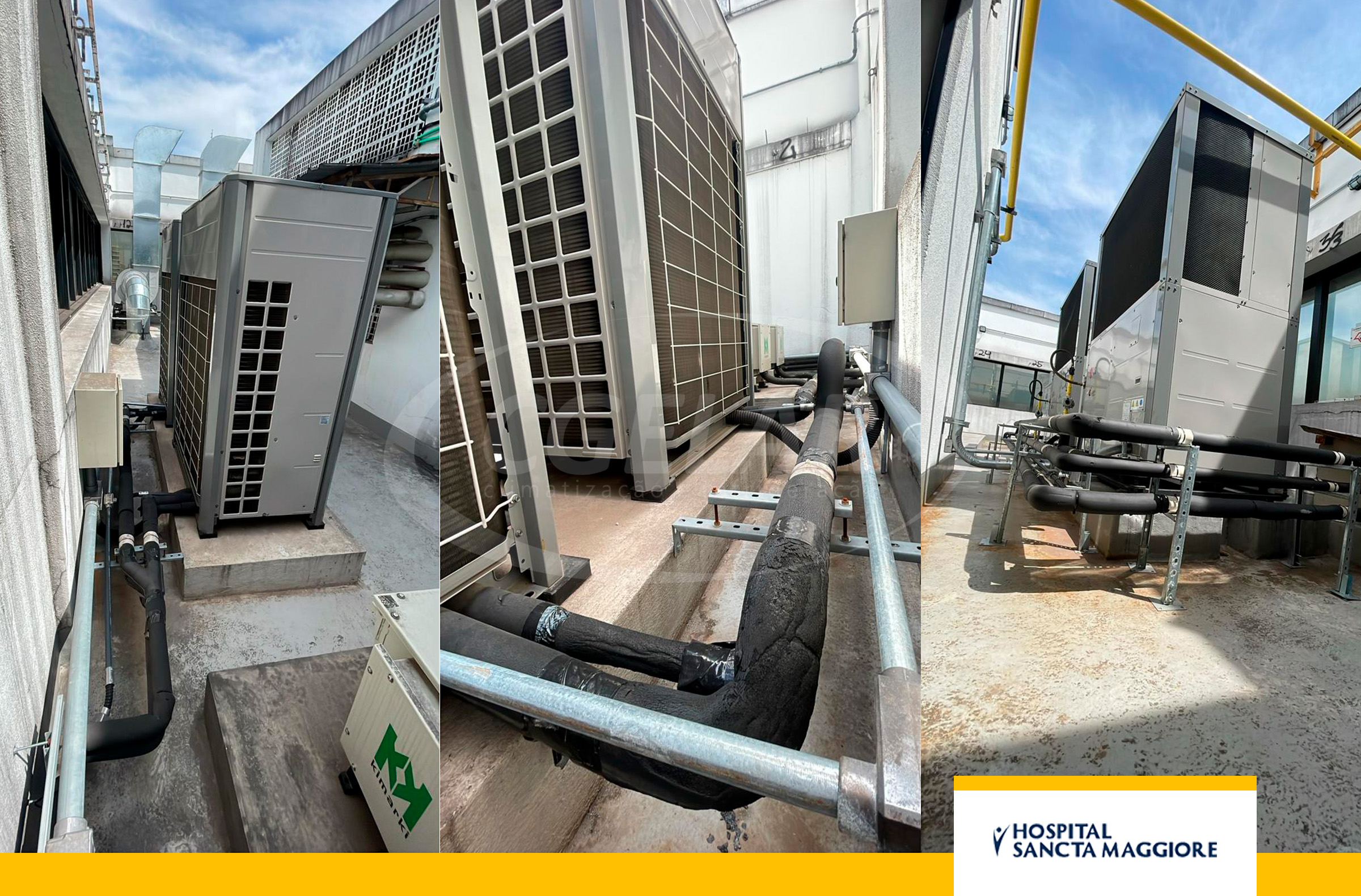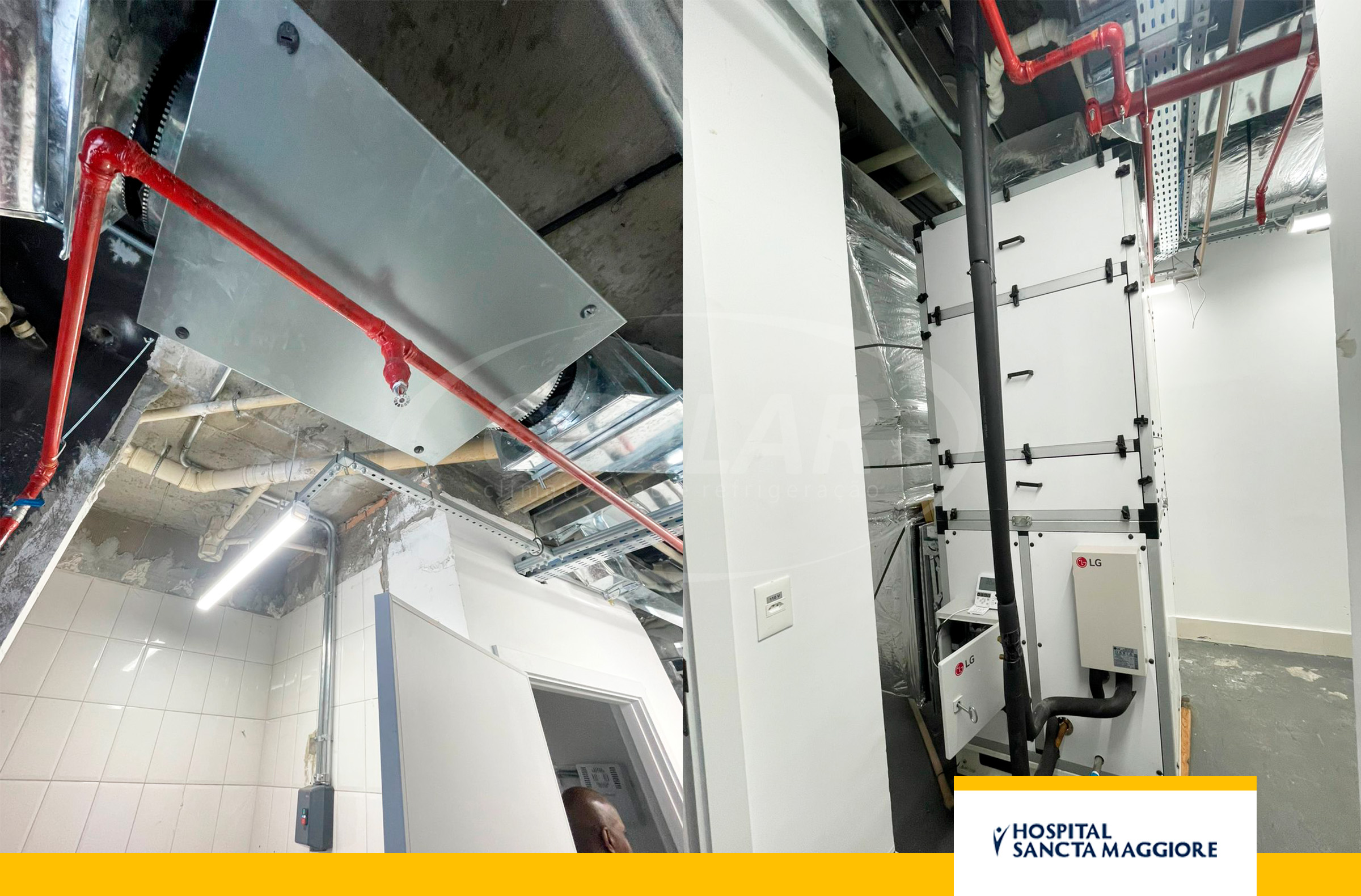O projeto contemplou a implantação de sistemas VRF GHP (movidos a gás) e VRF elétricos LG, proporcionando maior eficiência energética, redução de consumo elétrico e melhor conforto térmico em áreas críticas do hospital.